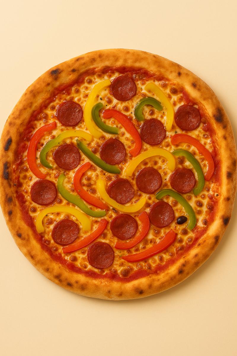 Sauce Tomate - Fromage - Chorizo - Poivrons marinés - Olives -Origan