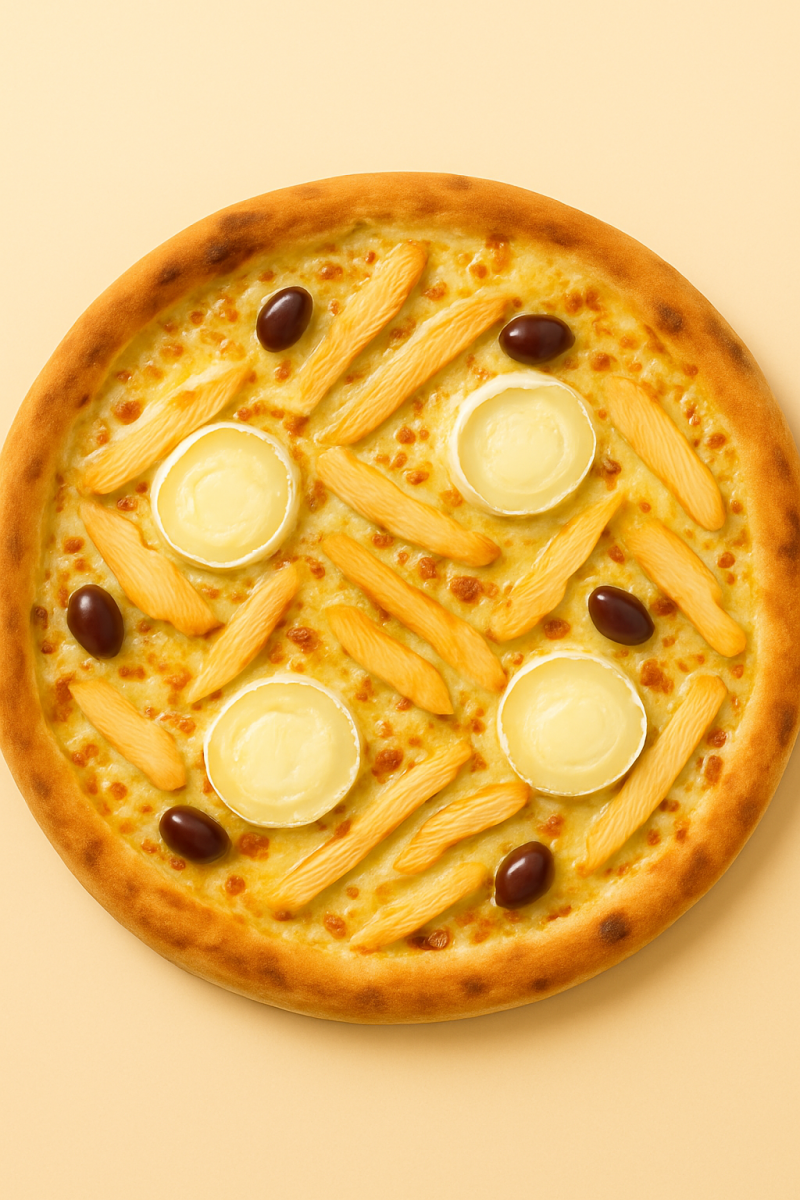 Moutarde à l’ancienne/crème fraîche - Fromage - Poulet - Chèvre - Olives - Origan
